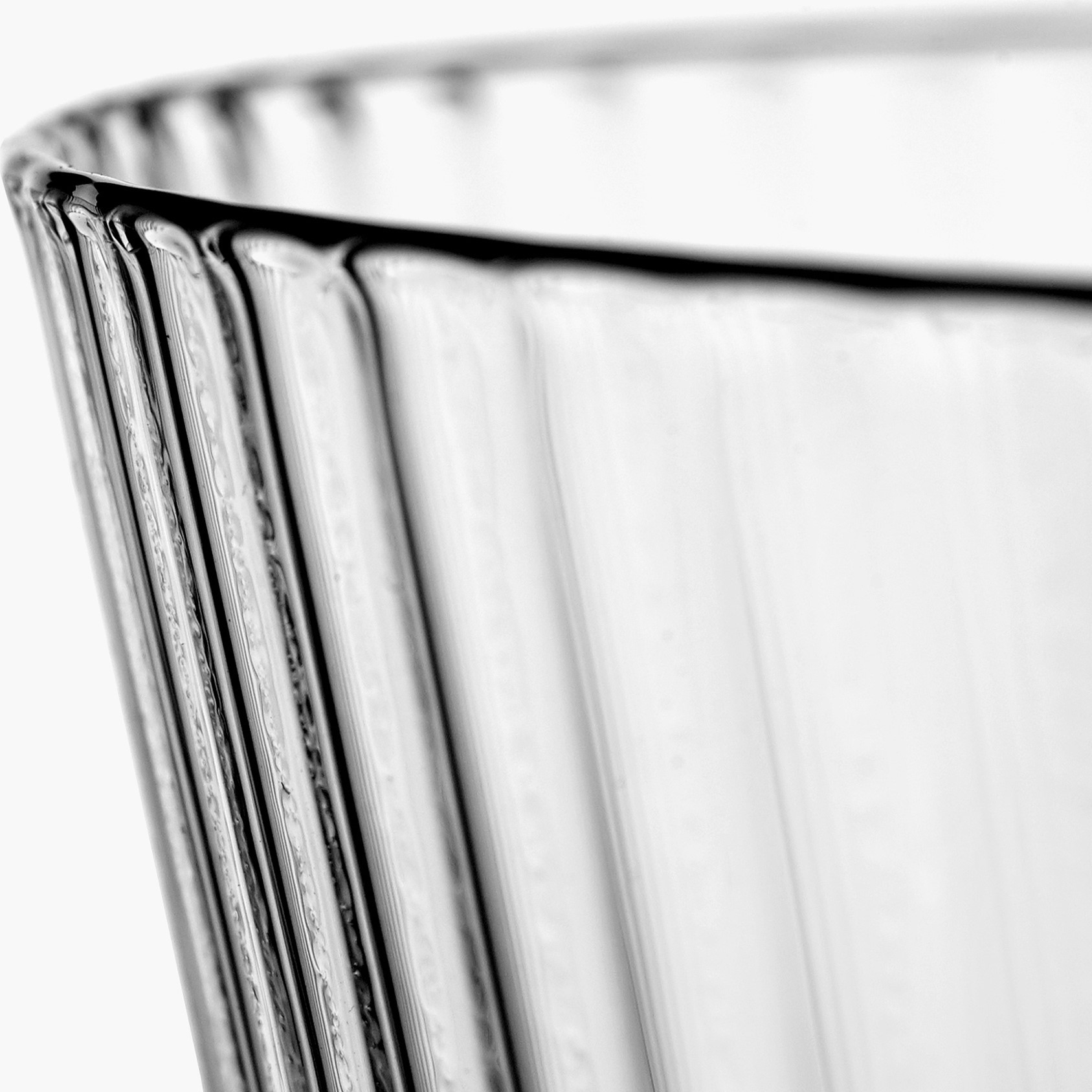 Szklanka Longdrink Inku łączy minimalistyczną elegancję z funkcjonalnym designem. Transparentne szkło z delikatnym, ryflowanym wykończeniem podkreśla lekkość napojów i dodaje subtelnej tekstury, a jednocześnie zapewnia pewny chwyt. Szklanka doskonale sprawdza się do serwowania long drinków, koktajli, wody czy lemoniady, wprowadzając elegancję zarówno do codziennego użytku, jak i podczas przyjęć.