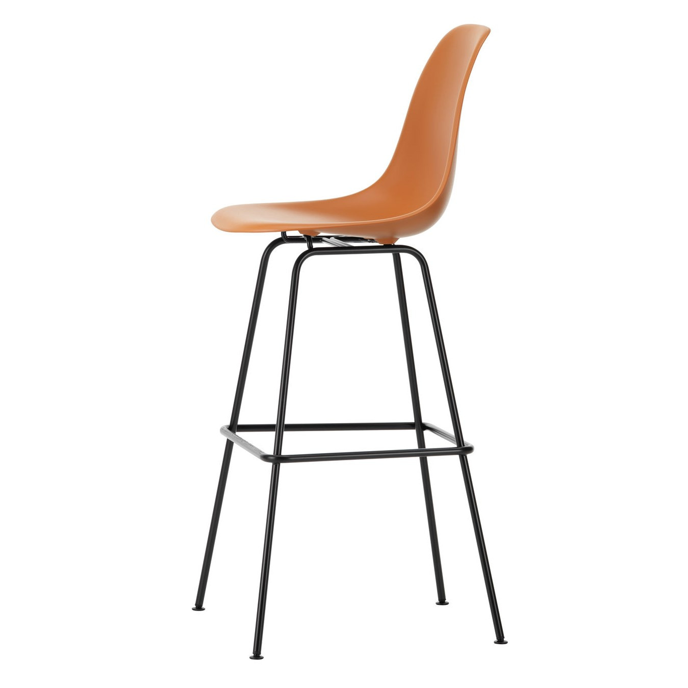 Organicznie wyprofilowane siedzisko łączy ergonomię z ponadczasową formą. Model RE High posiada czarną metalową podstawę na czterech nogach z podnóżkiem, przeznaczoną do wysokich blatów i stołów barowych. Krzesło wyposażono w ślizgacze Felt Glides Basic Dark, odpowiednie do podłóg twardych. Idealny wybór do kuchni z wyspą, barów i nowoczesnych wnętrz (dołączone zdjęcia aranżacyjne prezentują różne kolory krzesła barowego Eames Plastic pokazując szerokie możliwości aranżacyjne krzesła).