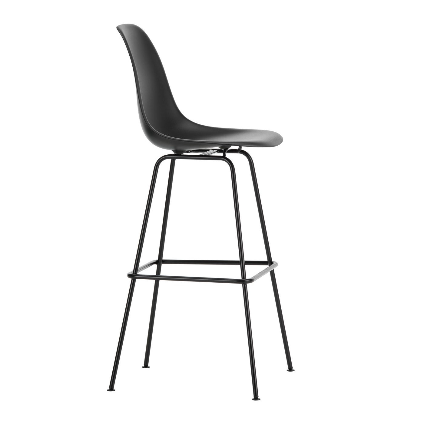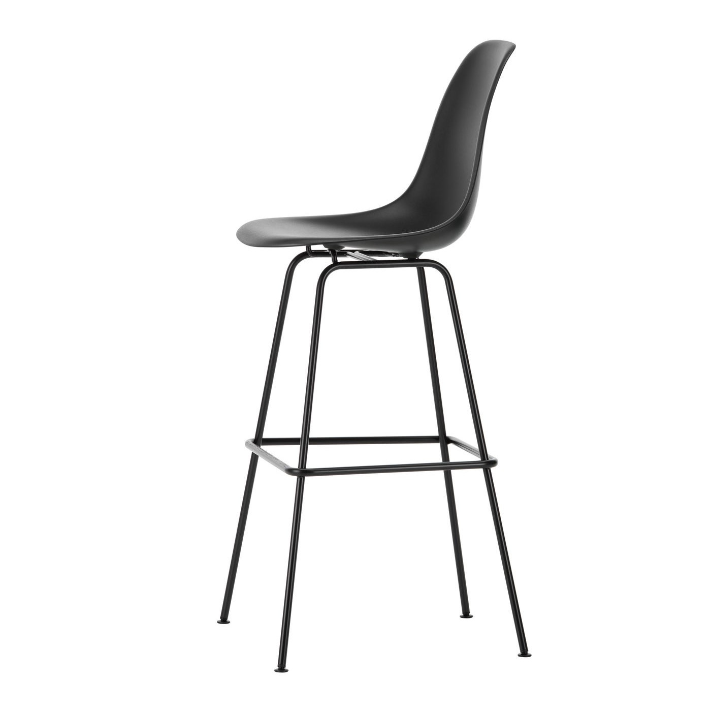Organicznie wyprofilowane siedzisko łączy ergonomię z ponadczasową formą. Model RE High posiada czarną metalową podstawę na czterech nogach z podnóżkiem, przeznaczoną do wysokich blatów i stołów barowych. Krzesło wyposażono w ślizgacze Felt Glides Basic Dark, odpowiednie do podłóg twardych. Idealny wybór do kuchni z wyspą, barów i nowoczesnych wnętrz (dołączone zdjęcia aranżacyjne prezentują różne kolory krzesła barowego Eames Plastic pokazując szerokie możliwości aranżacyjne krzesła).