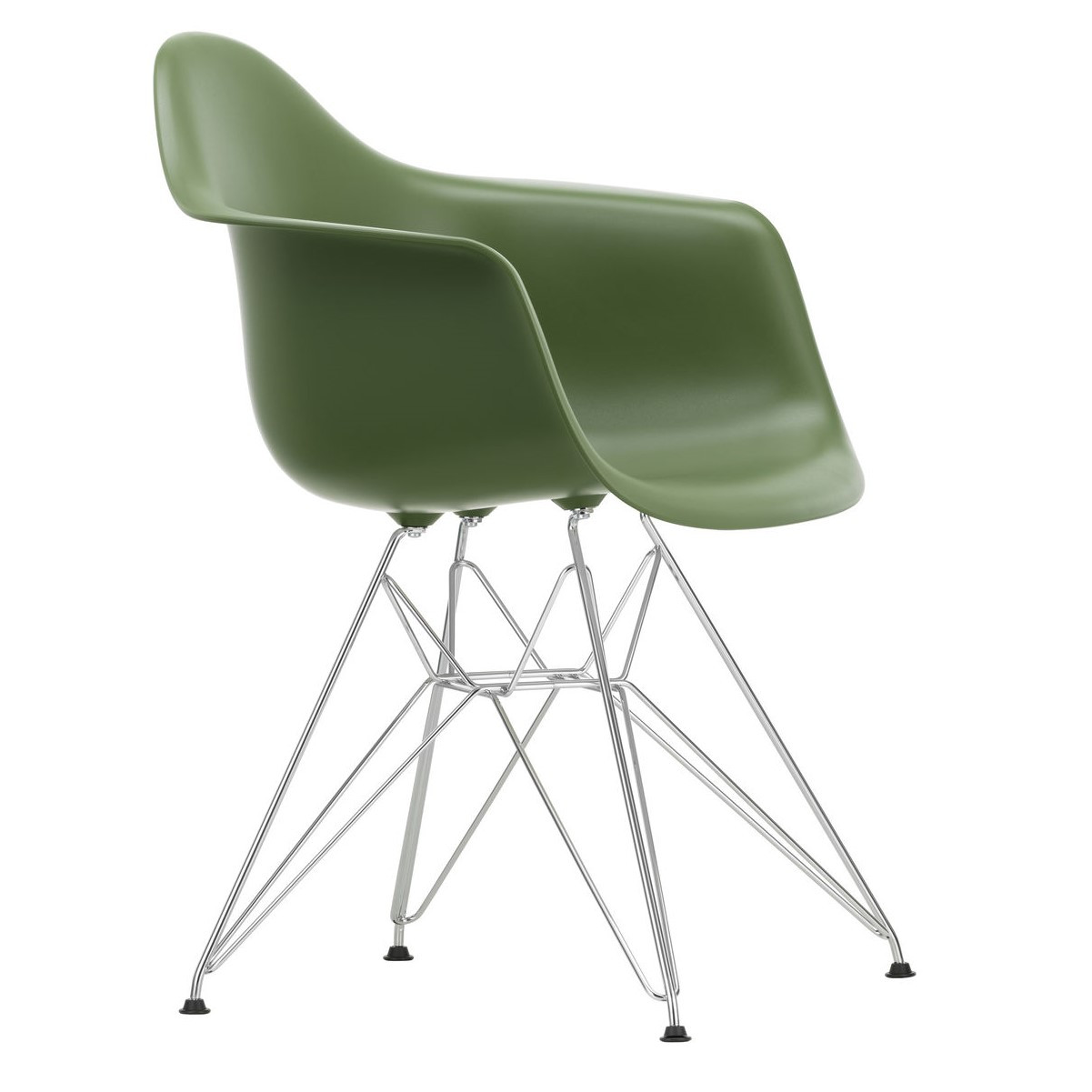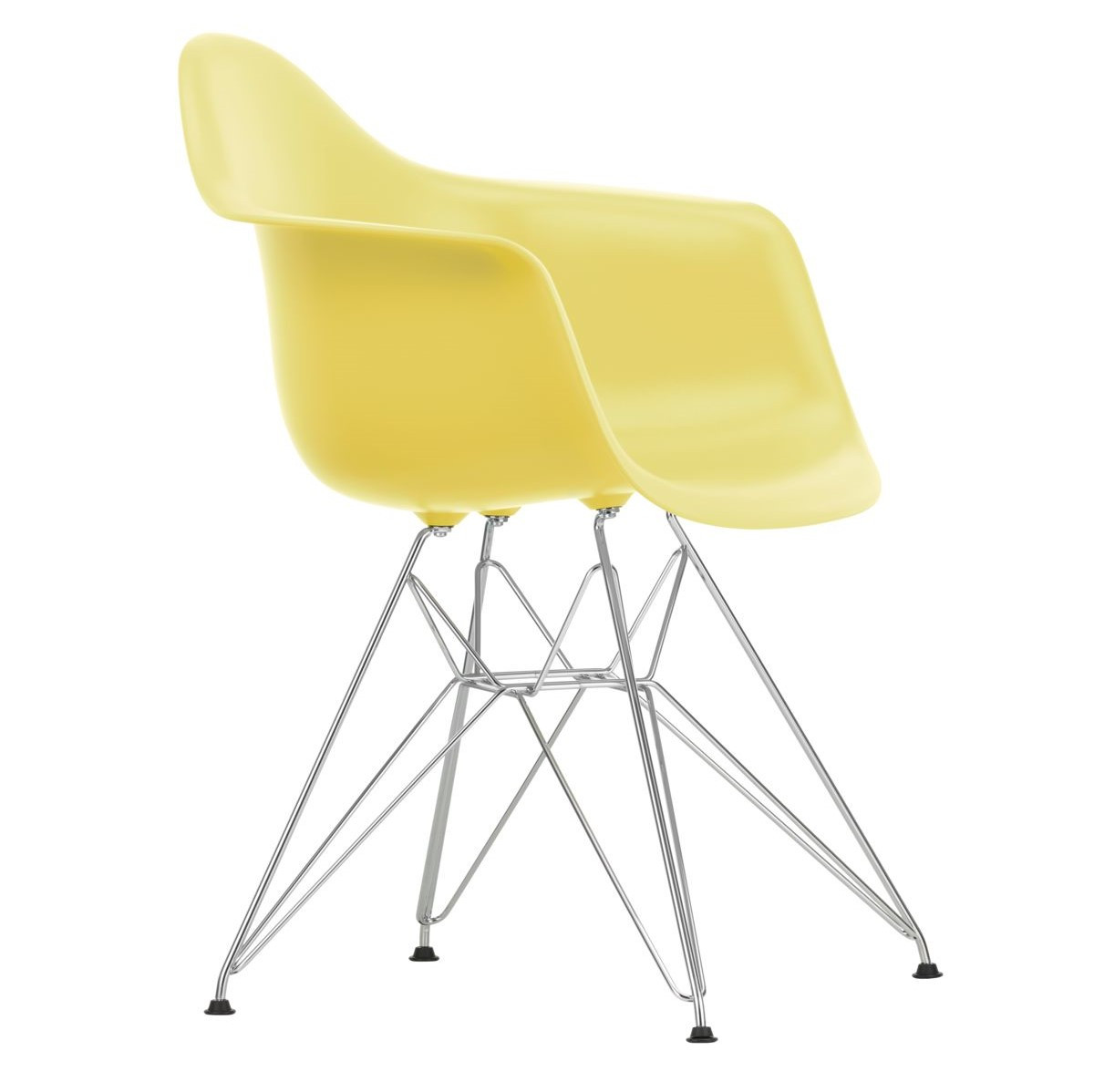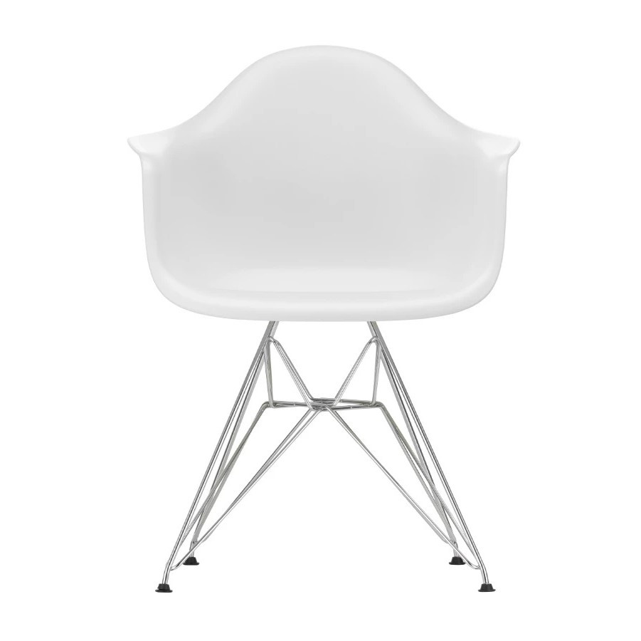 Ergonomicznie wyprofilowana skorupa siedziska wykonana jest z recyklingowanego polipropylenu (RE) i dostępna w wielu kolorach z charakterystycznymi pigmentowymi drobinkami – naturalną cechą materiału z recyklingu. Krzesło osadzono na kultowej chromowanej stalowej podstawie typu Eiffel, wykonanej z drutu z krzyżującymi się wspornikami.