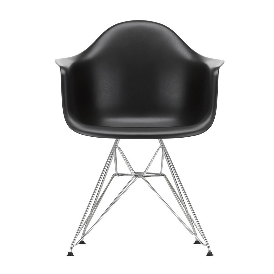 Ergonomicznie wyprofilowana skorupa siedziska wykonana jest z recyklingowanego polipropylenu (RE) i dostępna w wielu kolorach z charakterystycznymi pigmentowymi drobinkami – naturalną cechą materiału z recyklingu. Krzesło osadzono na kultowej chromowanej stalowej podstawie typu Eiffel, wykonanej z drutu z krzyżującymi się wspornikami.
