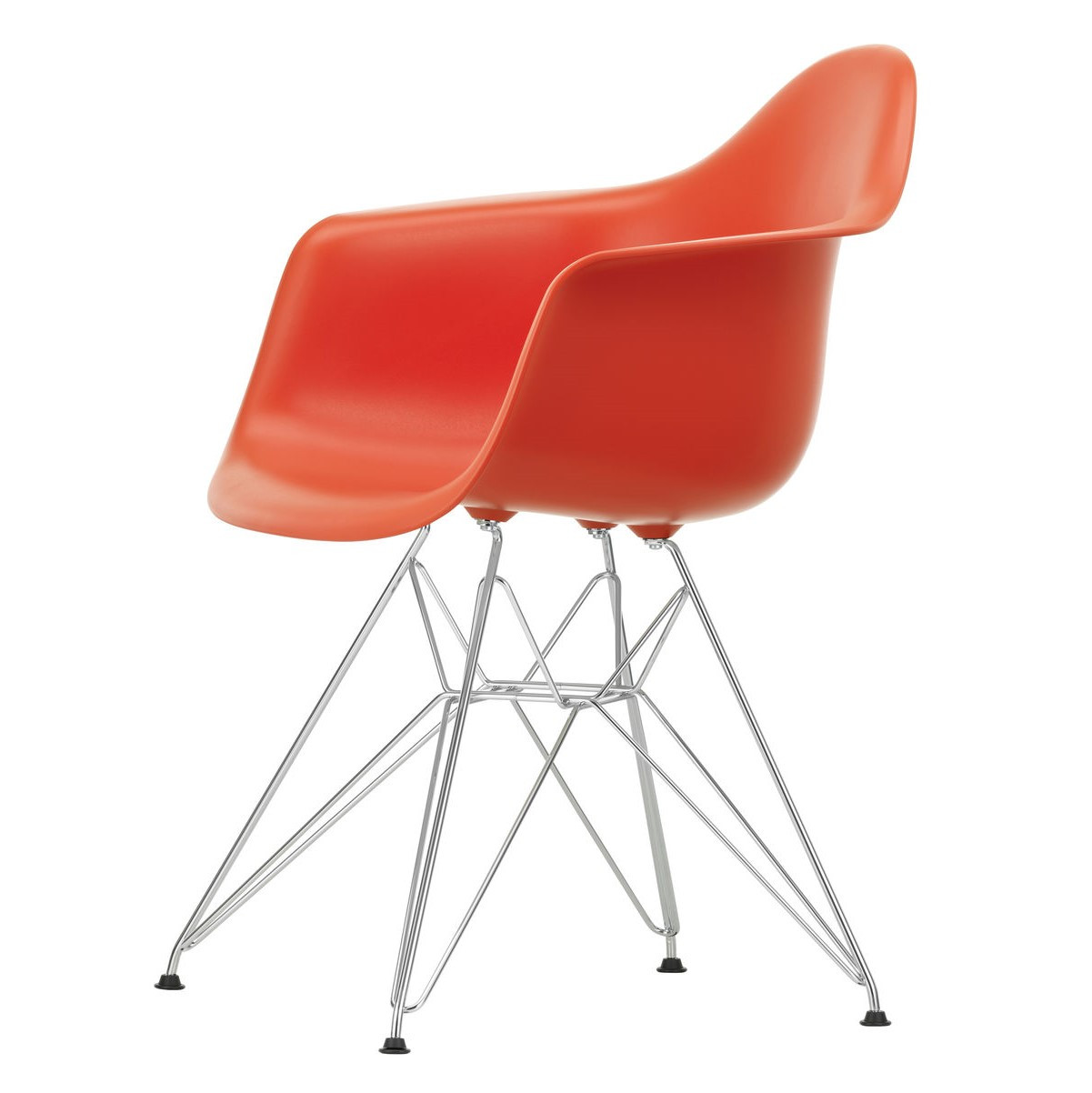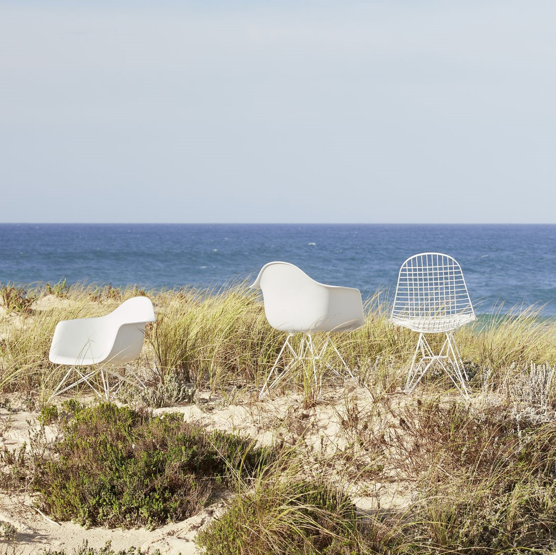 Ergonomicznie wyprofilowana skorupa siedziska wykonana jest z recyklingowanego polipropylenu (RE) i dostępna w wielu kolorach z charakterystycznymi pigmentowymi drobinkami – naturalną cechą materiału z recyklingu. Krzesło osadzono na kultowej chromowanej stalowej podstawie typu Eiffel, wykonanej z drutu z krzyżującymi się wspornikami.