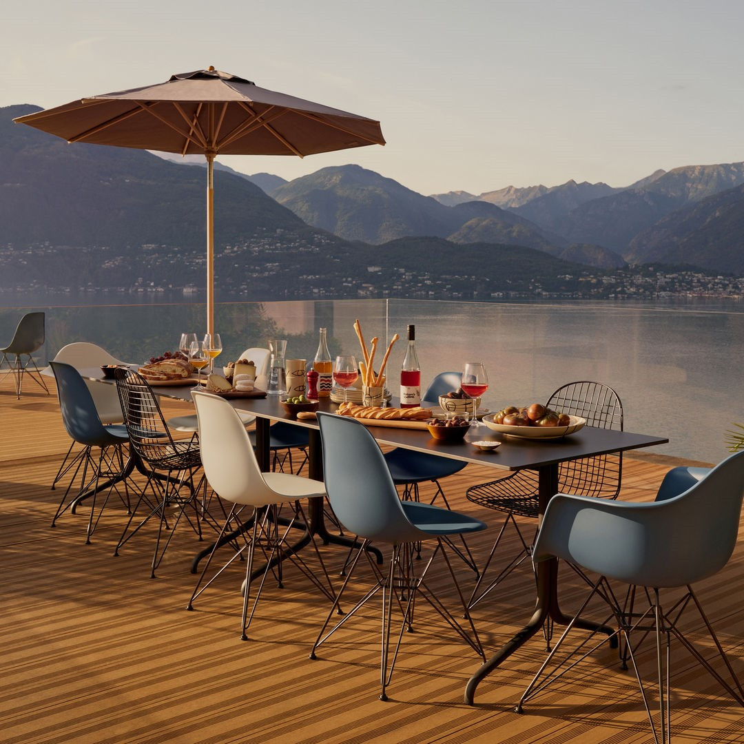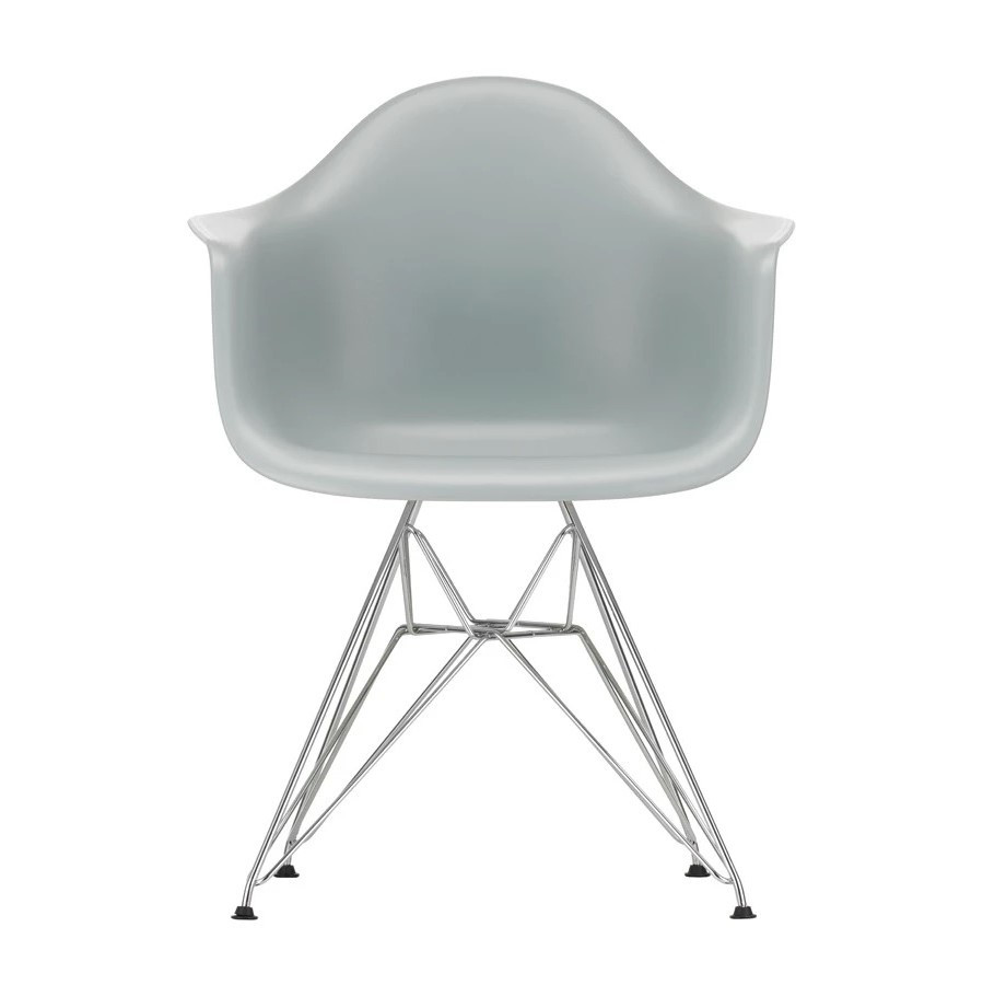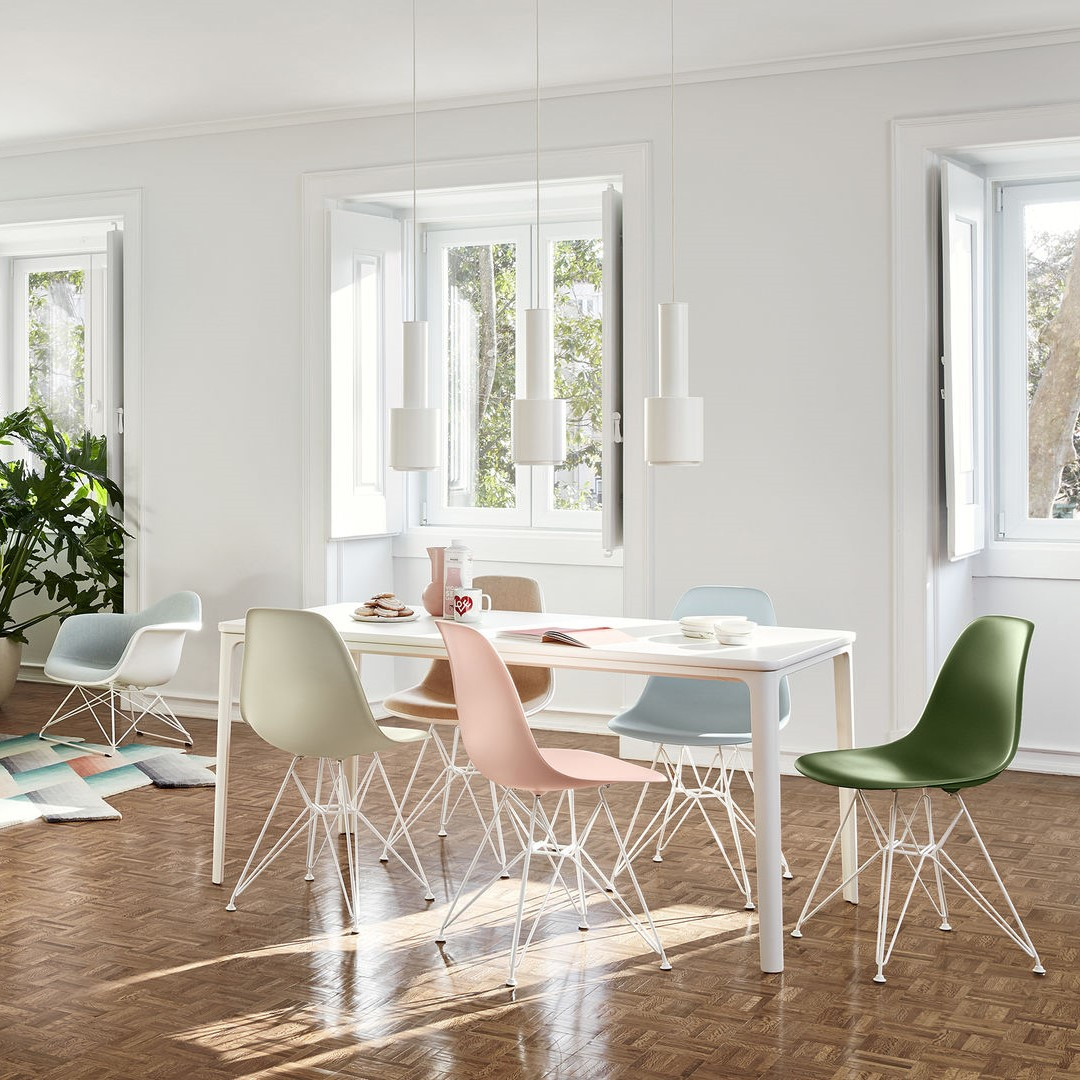 Ergonomicznie wyprofilowana skorupa siedziska wykonana jest z recyklingowanego polipropylenu (RE) i dostępna w wielu kolorach z charakterystycznymi pigmentowymi drobinkami – naturalną cechą materiału z recyklingu. Krzesło osadzono na kultowej chromowanej stalowej podstawie typu Eiffel, wykonanej z drutu z krzyżującymi się wspornikami.