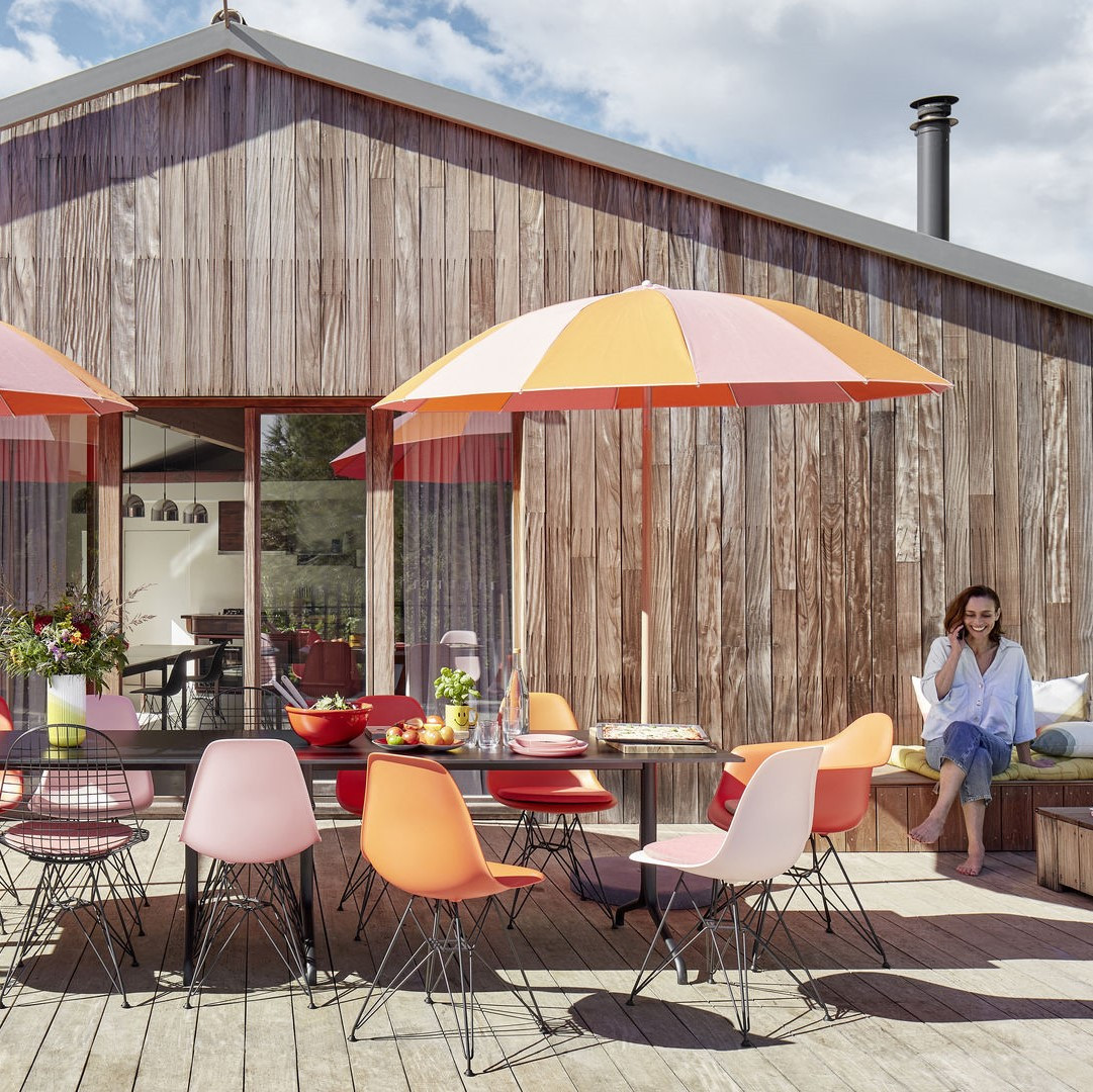Ergonomicznie wyprofilowana skorupa siedziska wykonana jest z recyklingowanego polipropylenu (RE) i dostępna w wielu kolorach z charakterystycznymi pigmentowymi drobinkami – naturalną cechą materiału z recyklingu. Krzesło osadzono na kultowej chromowanej stalowej podstawie typu Eiffel, wykonanej z drutu z krzyżującymi się wspornikami.