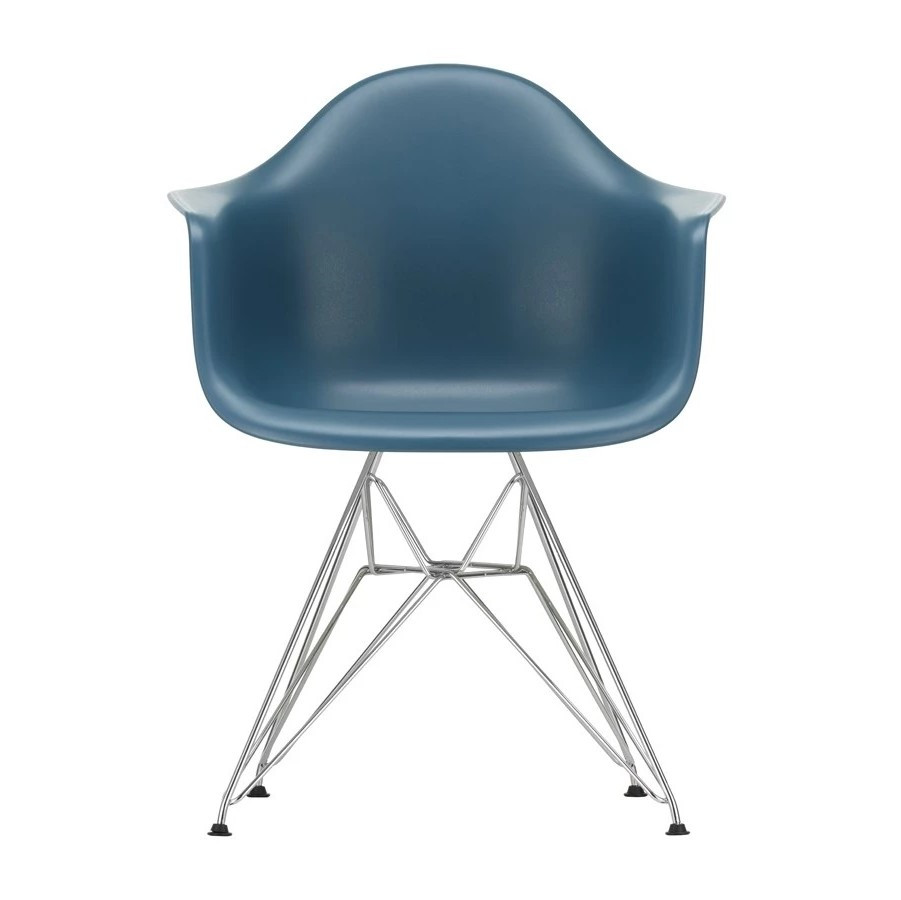 Ergonomicznie wyprofilowana skorupa siedziska wykonana jest z recyklingowanego polipropylenu (RE) i dostępna w wielu kolorach z charakterystycznymi pigmentowymi drobinkami – naturalną cechą materiału z recyklingu. Krzesło osadzono na kultowej chromowanej stalowej podstawie typu Eiffel, wykonanej z drutu z krzyżującymi się wspornikami.
