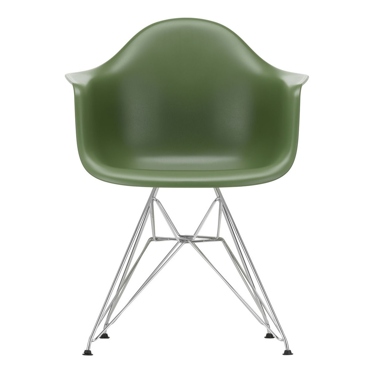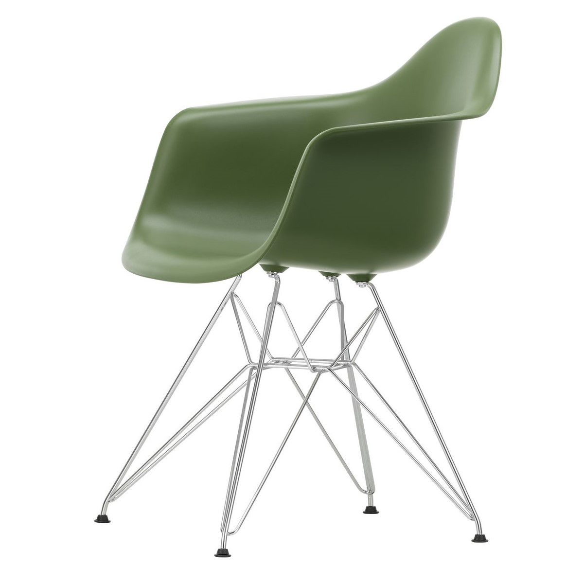 Ergonomicznie wyprofilowana skorupa siedziska wykonana jest z recyklingowanego polipropylenu (RE) i dostępna w wielu kolorach z charakterystycznymi pigmentowymi drobinkami – naturalną cechą materiału z recyklingu. Krzesło osadzono na kultowej chromowanej stalowej podstawie typu Eiffel, wykonanej z drutu z krzyżującymi się wspornikami.