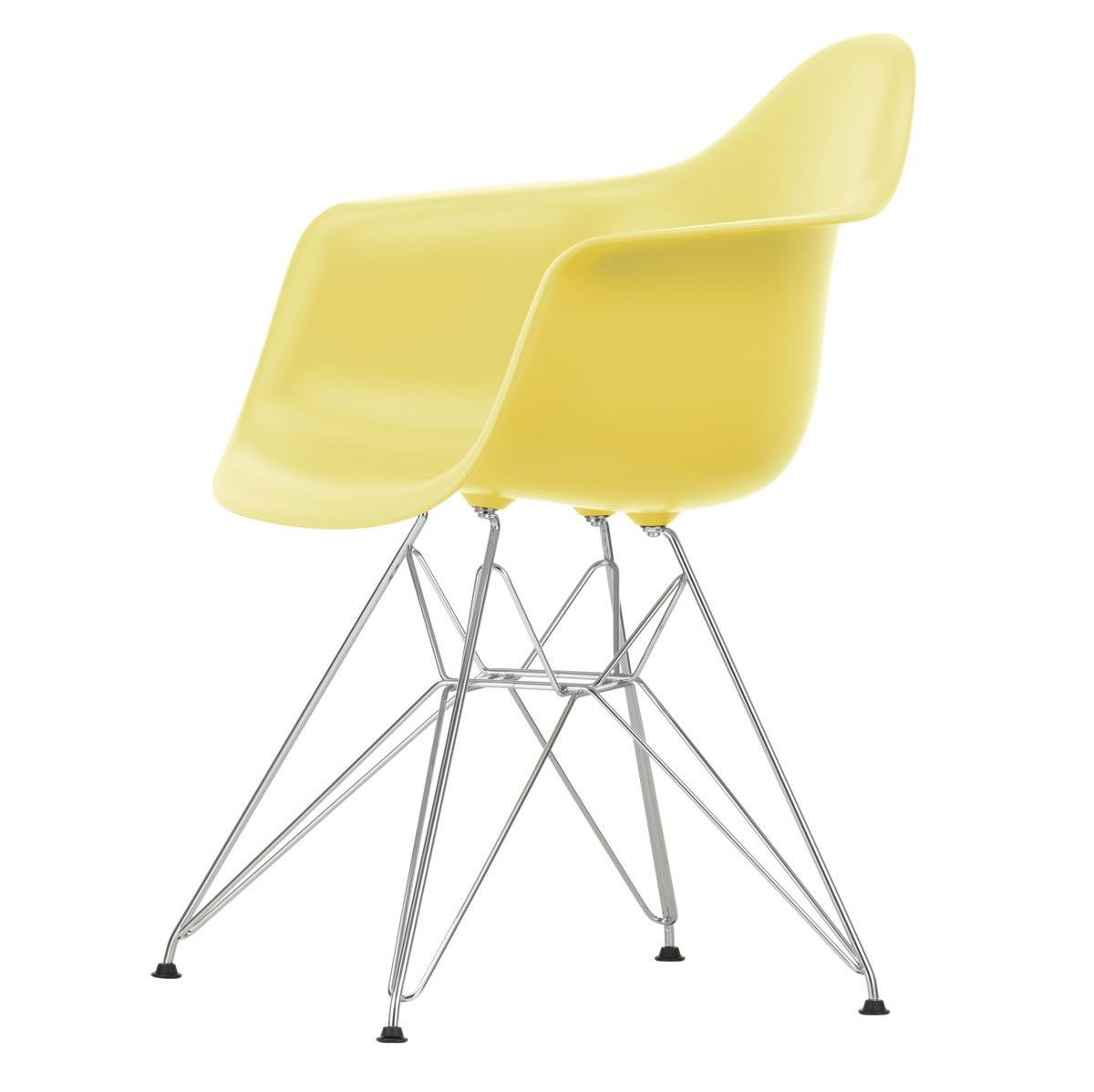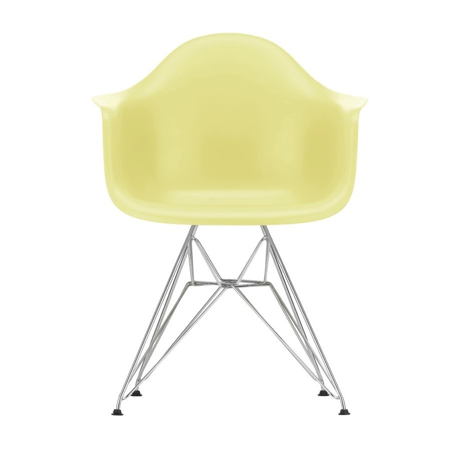 Ergonomicznie wyprofilowana skorupa siedziska wykonana jest z recyklingowanego polipropylenu (RE) i dostępna w wielu kolorach z charakterystycznymi pigmentowymi drobinkami – naturalną cechą materiału z recyklingu. Krzesło osadzono na kultowej chromowanej stalowej podstawie typu Eiffel, wykonanej z drutu z krzyżującymi się wspornikami.